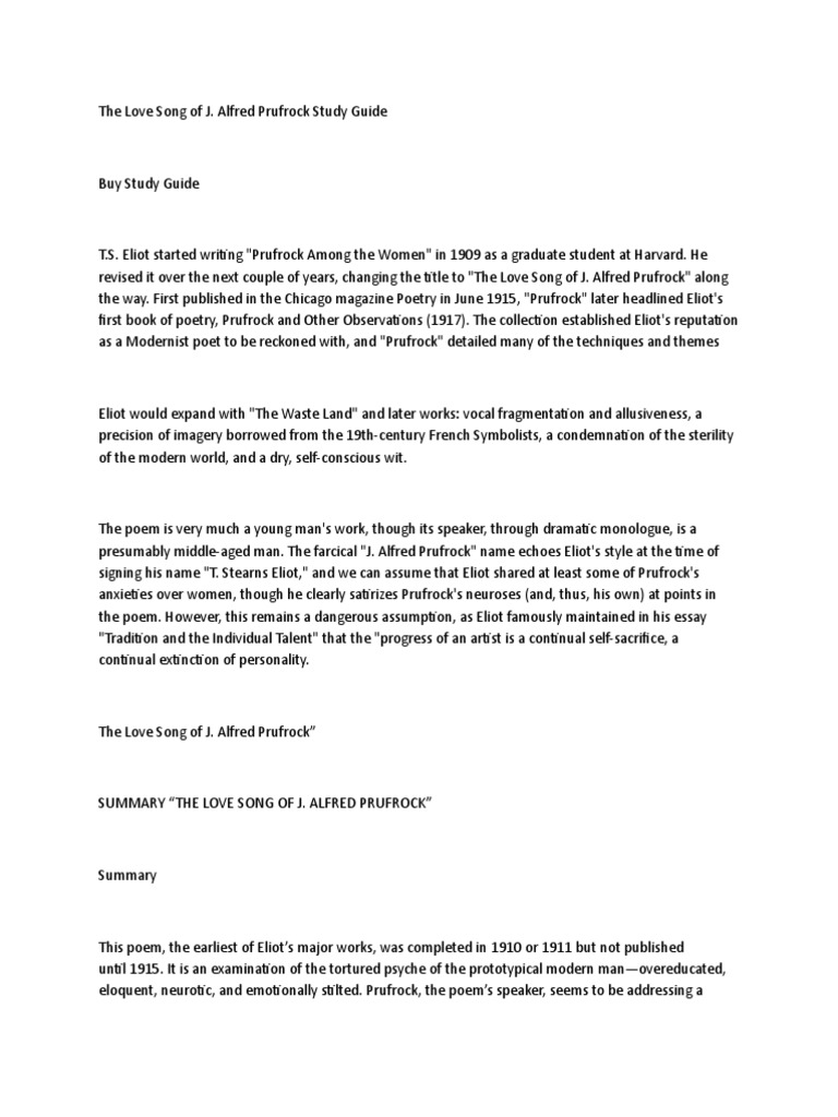 Prufrock is a literary proof assistant. 1) who is the speaker of the poem and to whom is. Analysis of the setting of the poems the love song of j. Physics review and worksheets, quiz monday. Eliot's the love song of j.